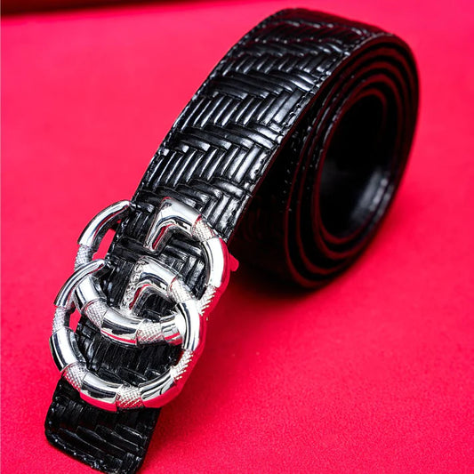 Shiny Textured Branded Buckle Premium Leather Belts